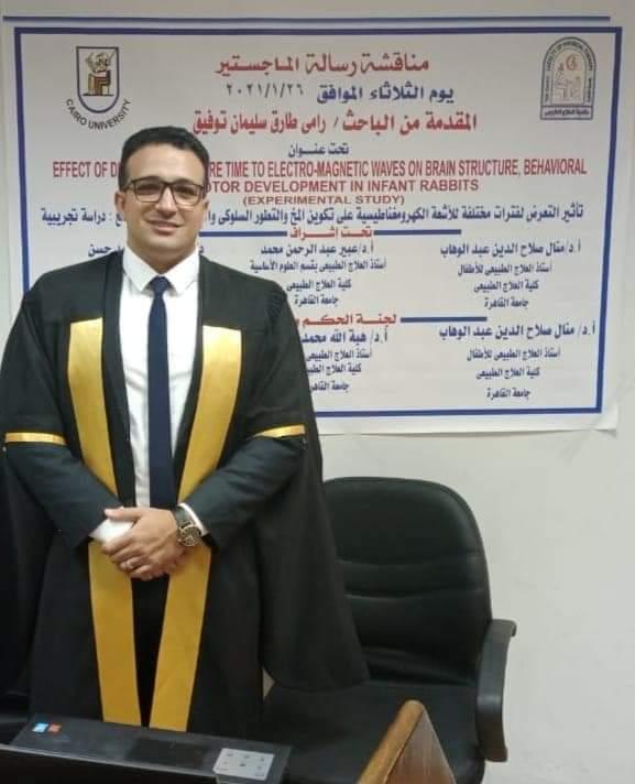 وفيما يتعلق بهذا الموضوع،تم مناقشة رسالة الماجستير المقدمة من الباحث الدكتور/ رامى طارق سليمان بكلية العلاج الطبيعى – جامعة القاهرة، عن تأثير التعرض لفترات مختلفة للأشعة الكهرومغناطيسية على تكوين المخ والتطور السلوكى والحركى للأرانب الرضع.