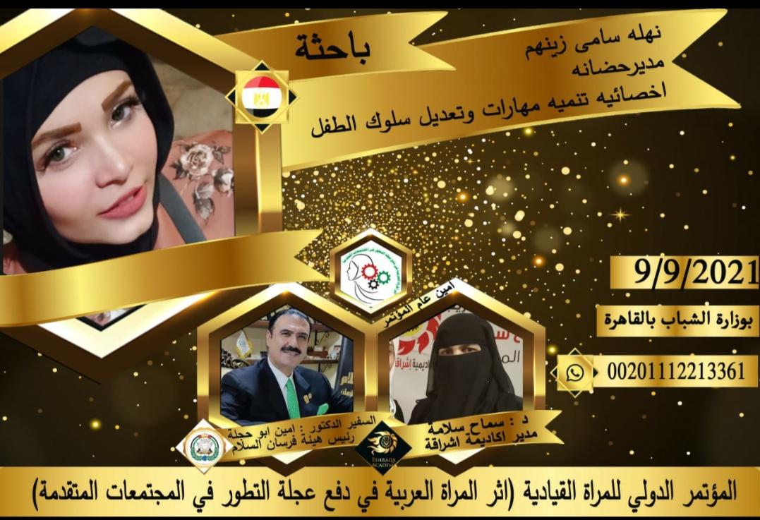 اهتمت الدولة فى الفترة الاخيرة بدور المراة على كافة الاصعدة النفسية والاقتصادية والادارية وقد صرحت د سماح سلامه امين عام المؤتمر الدولى للمراة القيادية الذى سيعقد بوزارة الشباب يوم9/9/2021 ان من افضل الابحاث المقدمة بالمؤتمر بحث