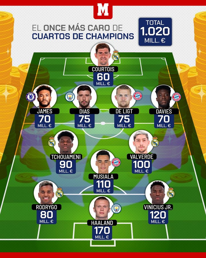 كشفت صحيفة «آس» الإسبانية عن التشكيلة الأغلى للاعبين التي مازال أنديتهم مستمرة في منافسات دوري أبطال أوربا هذا الموسم.