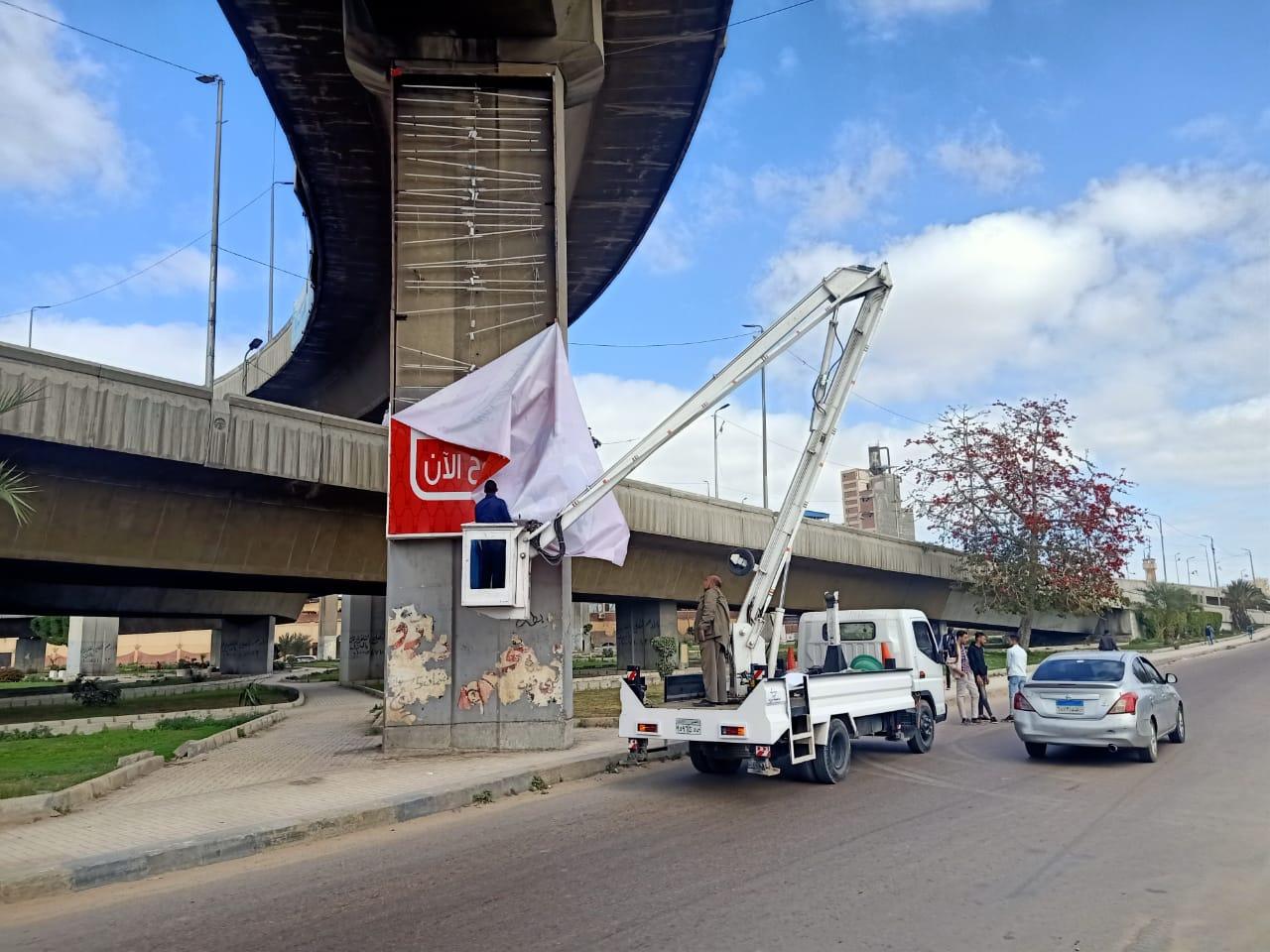 وتنفيذا لتعليمات اللواء “علاء يوسف” رئيس حي وسط؛ واصلت إدارة أشغال الطريق والإعلانات حملاتها لإزالة الإعلانات المخالفة من شوارع الحي.