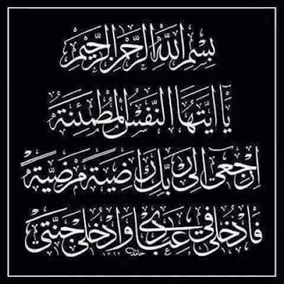 ((يَا أَيَّتُهَا النَّفْسُ الْمُطْمَئِنَّةُ ارْجِعِي إِلَى رَبِّكِ رَاضِيَةً مَرْضِيَّةً فَادْخُلِي فِي عِبَادِي وَادْخُلِي جَنَّتِي))