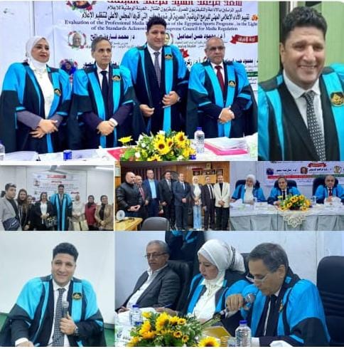 وشهد المناقشة كلا من الدكتور ممدوح صالح مستشار رئيس الجامعة للتطوير المؤسسي،والدكتور أحمد الروبي عميد الكلية، والدكتورة منى زيتون، وكيل الكلية للدراسات العليا، ونخبة من الإعلاميين كلا من ا.على الفرماوى كبير مذيعى التليفزيون المصرى- تليفزيون القنال ، والاستاذ الصحفى محمد عباس مدير مكتب الاهرام المسائي ، و ا.الصحفى عبد الفتاح حافظ ، وا. محمد سعد مدير عام اذاعة، ا. عادل مصليحي وا. نيللى كمال مدير مكتب اذاعة القناة ، والمذيعة عبير غازى ، و المذيعة .منال بدوى تليفزيون القنال ،ا. اميرة الخضرى مراسل صحفى ونخبة من الإعلاميين وقيادات بورسعيد ا. صبرى مكاوى ،ا.مجدى النقيب هذا كما استعرض فى رسالته العديد من الأطروحات والتوصيات التى أشادت بها لجنة المناقشة والإشراف على الرسالة ومن أهمها -تنظيم دورات خاصة للمصورين والمخرجين والفنيين العاملين في مجال البث المباشر للأحداث والمباريات الرياضية للحد من التعصب الرياضي ومعرفة الفرق بين الأمانة الإعلامية وتحمل المسئولية خاصة في زوايا التصوير والعرض واللقطات وعدد مرات الإعادة منعا لحدوث كافة أنواع الشغب والتعصب الرياضي وزيادة المشكلات بين الأندية والجماهير بشكل فوري وعاجل يستلزم تنظيم تلك الدورات التدريبية ،