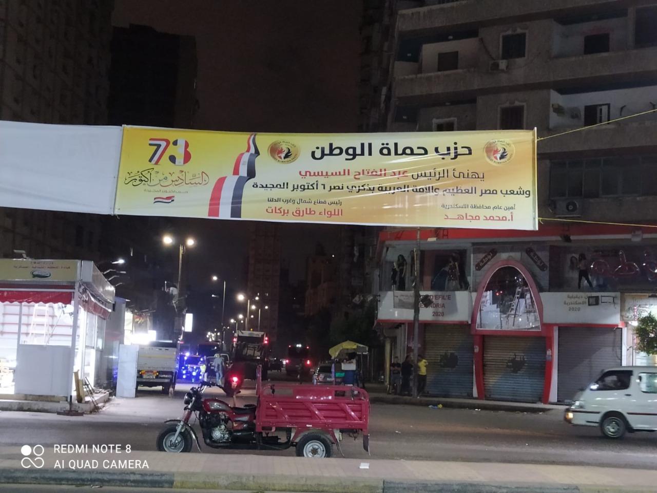 زَيَنت، لافتات حزب حُماة الوطن شوارع عروس البحر الأبيض المتوسط، اليوم الخميس؛ لتهنئة الرئيس عبد الفتاح السيسي، وجموع المصريين والشعوب العربية، بمناسبة الاحتفال بالذكرى رقم 48 لانتصارات حرب أكتوبر المجيد؛ التي سطرها رجال القوات المسلحة بدمائهم وفكرهم؛ لتظل انجازًا خالدًا وملمحة تاريخية وطنية خالصة.