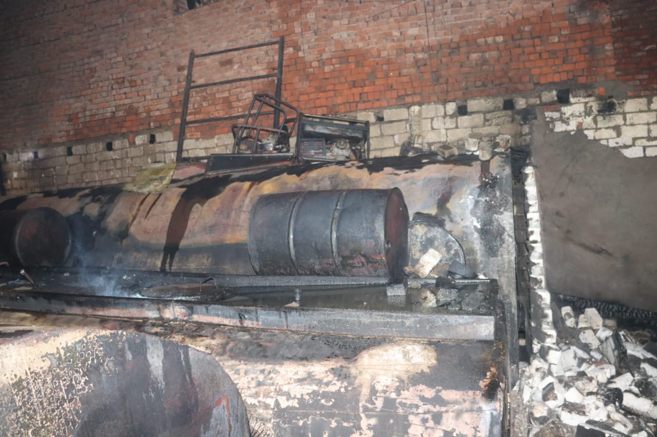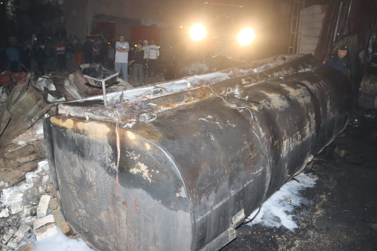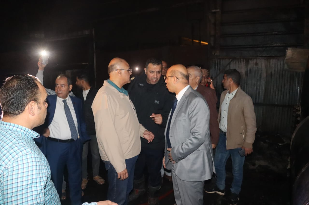 محافظ القليوبية يتفقد موقع حريق مخرن لتجميع الزيوت المستعملة بميت حلفا بقليوب
