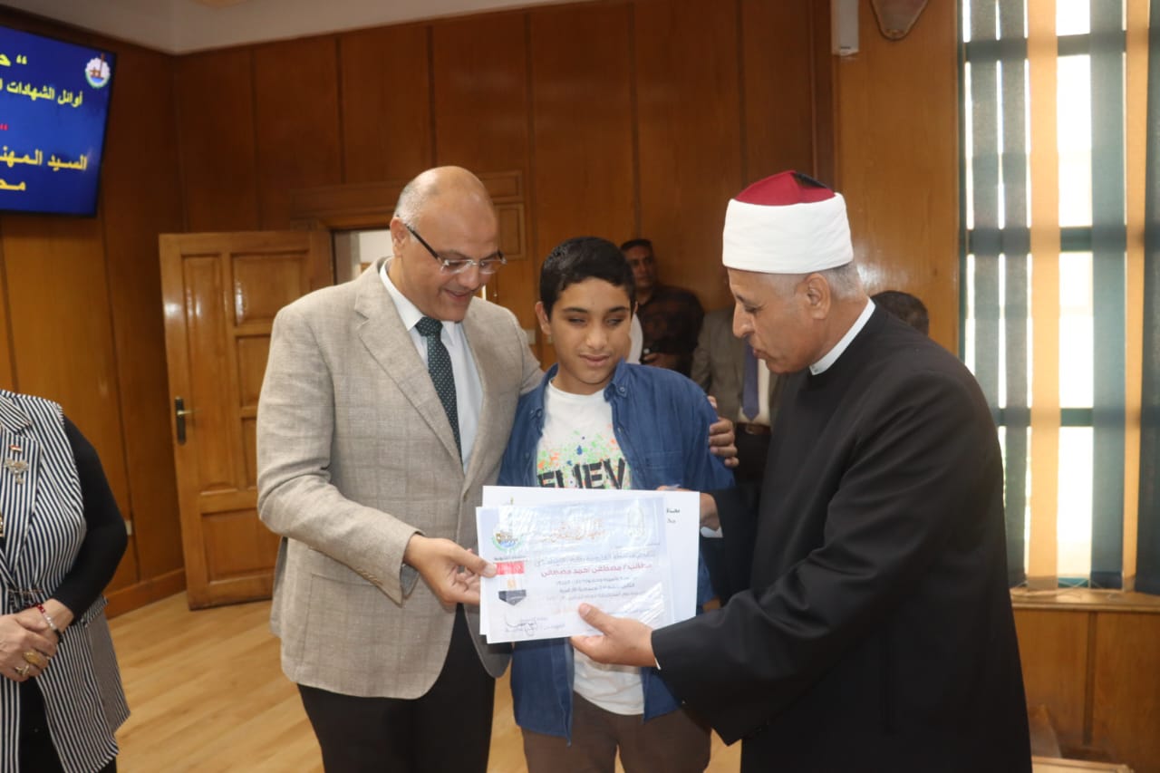 حيث كرم ” المحافظ ” عدد 59 طالب وطالبة من اوائل الشهادات العامة على مستوى الجمهورية والمحافظة ، وتضمن التكريم توزيع مبالغ مالية بالإضافة إلي شهادات التقدير