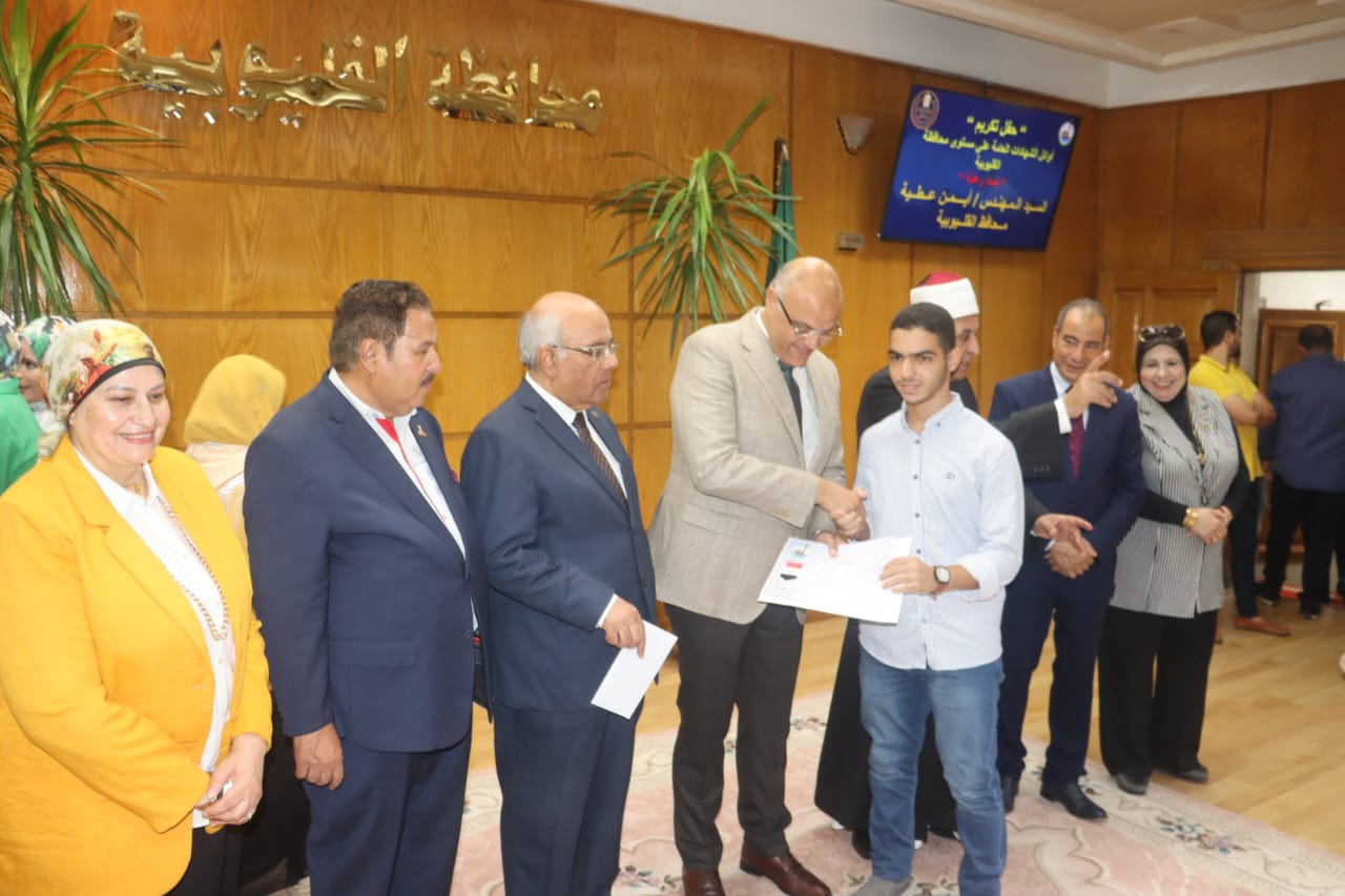 شهد المهندس ايمن عطيه محافظ القليويبة حفل تكريم اوائل الشهادات العامة (الاعدادية- الثانوية العامة-الدبلومات الفنية- الازهر الشريف) وعددهم 59 طالب وطالبة من اوائل الشهادة الاعدادية والثانوية العامة والدبلومات الفنية والازهر الشريف