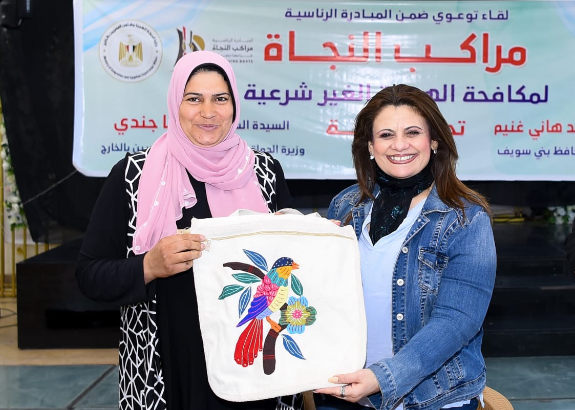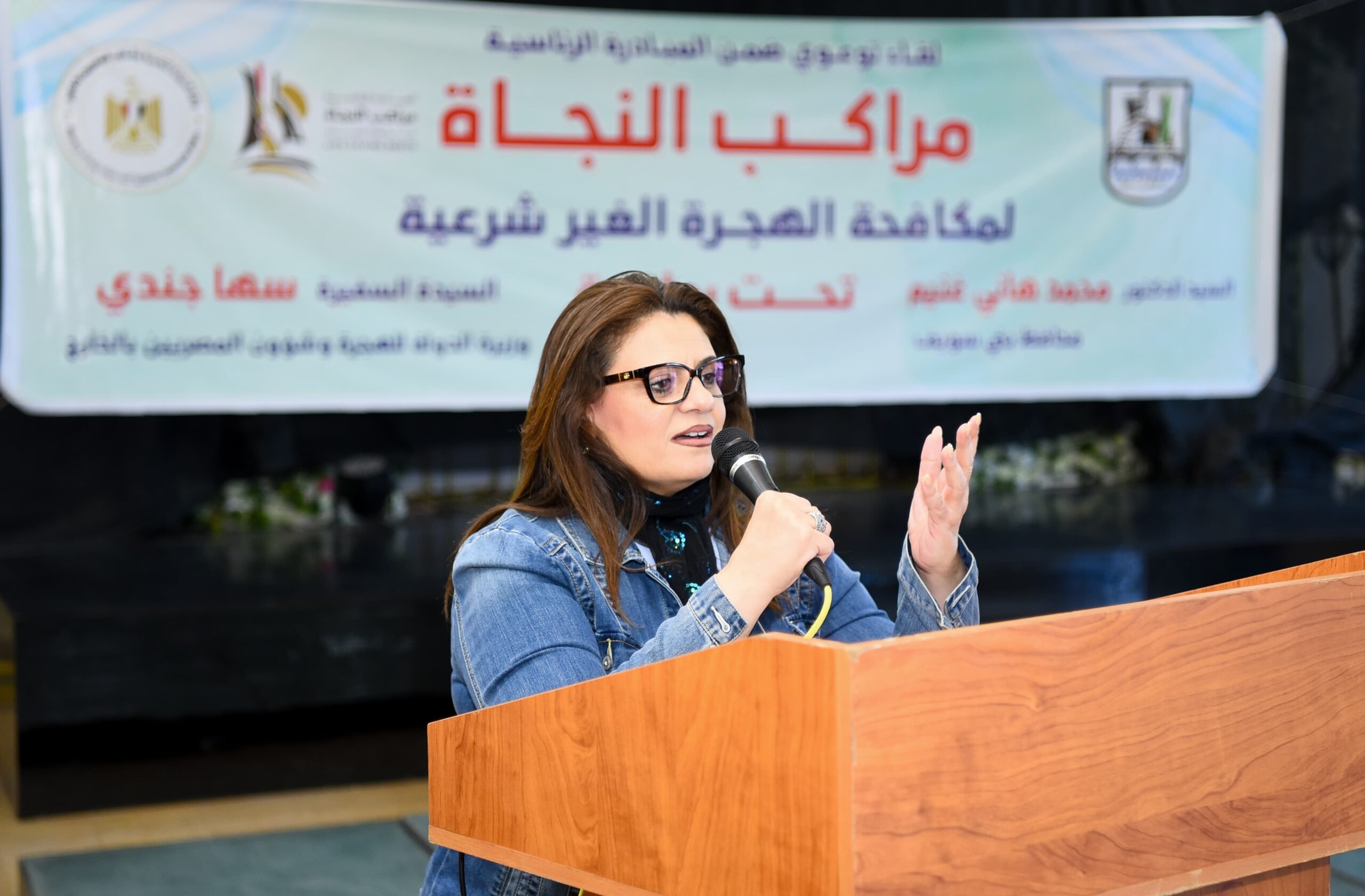 ونوهت وزيرة الهجرة بأنه في عام 2022، تم توقيع بروتوكول تعاون بين وزارة الدولة للهجرة وشئون المصريين في الخارج ووزارة الإسكان والمرافق والمجتمعات العمرانية، بشأن توعية عدد 2700 شاب من مخاطر الهجرة غير الشرعية وتدريبهم وتأهيلهم حرفيا للانتقال لسوق العمل على المهن المختلفة ضمن فعاليات المبادرة الرئاسية حياة كريمة والمبادرة الرئاسية مراكب النجاة من الفئات العمرية من 16 إلى 45 سنة، على تخصصات متنوعة وهي (نجارة العمارة، والدهانات، والسباكة والكهرباء) وتم تنفيذ عدد 55 دورة توعوية بمخاطر الهجرة غير الشرعية في 8 محافظات بإجمالي 1344 مستفيدا، بالتوازي مع 60 دورة حرفية في 8 محافظات بإجمالي 1266 مستفيدا وجار استكمال الدورات الحرفية في باقي المحافظات، وتم تنفيذ تدريبات منهم في محافظة بني سويف، بالإضافة إلى التعاون مع القطاع الخاص والغرف التجارية من منطلق مبدأ المسئولية المجتمعية، وتتم التدريبات وفقا لمتطلبات اسوق المصري وأسواق العمل الأوروبية.