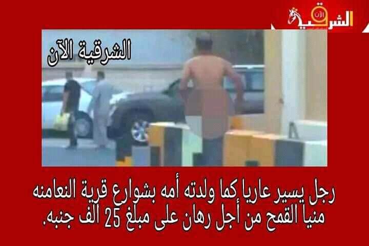 وقام هذا الرجل بالسير عارياً في قرية النعامنة بمركز منيا القمح بالشرقية وتم القبض عليه بعد تداول صورته في احد مواقع التواصل الاجتماعي فيسبوك وتم عمل محضر بالواقعة وتولت النيابة التحقيق