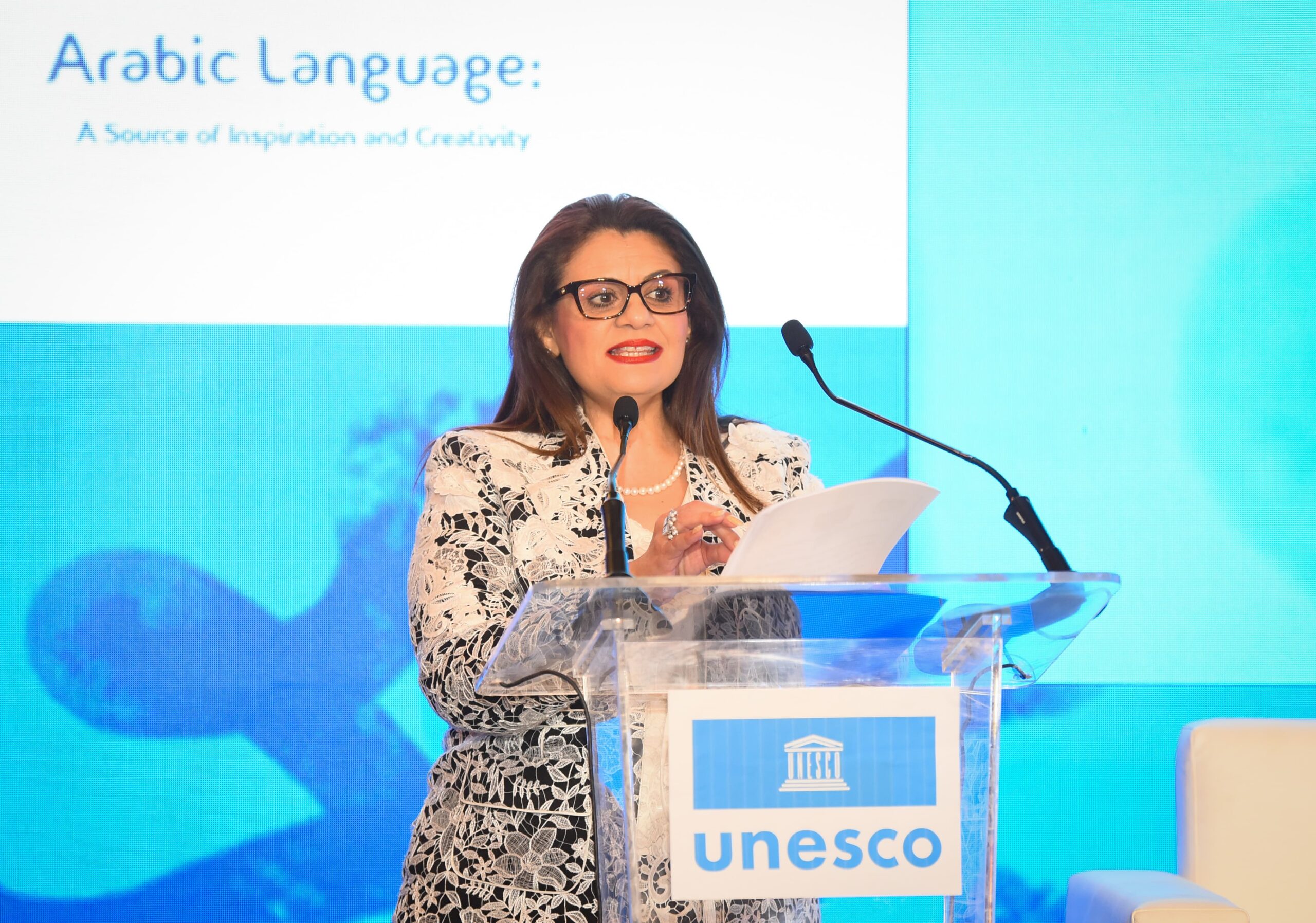 وأشارت سيادتها إلى احتفال وزارة الهجرة مع اليونسكو في ديسمبر الماضى بالتعاون مع وزارة الثقافة باليوم العالمي للغة العربية في ذكرى مرور خمسين عاماً على الاعتراف باللغة العربية كواحدة من لغات الأمم المتحدة الست الرسمية، فهي واحدة من أكثر خمس لغات تحدثًا في العالم فهي اللغة التي يتحدث بها أكثر من 400 مليون شخص حول العالم وهي اللغة الرسمية لـ 22 دولة أعضاء في جامعة الدول العربية، وهي أيضًا واحدة من لغات الأمم المتحدة الست، فضلا عن أنها واحدة من لغات الاتحاد الأفريقي وأحد أغنى لغات العالم، فقد وصل عدد مفرداتها دون تكرار إلى ما يزيد على 12 مليون كلمة. فاللغة العربية لغة غنية وملهمة ولذلك ركز شعوبها على إظهار إبداعاتهم في مجالات الثقافة والأدب والفنون، كان من بينهم كوكبة من الأدباء والمبدعين المصريين مثل نجيب محفوظ، وتوفيق الحكيم، وطه حسين، وعباس العقاد، ومصطفى صادق الرافعي.