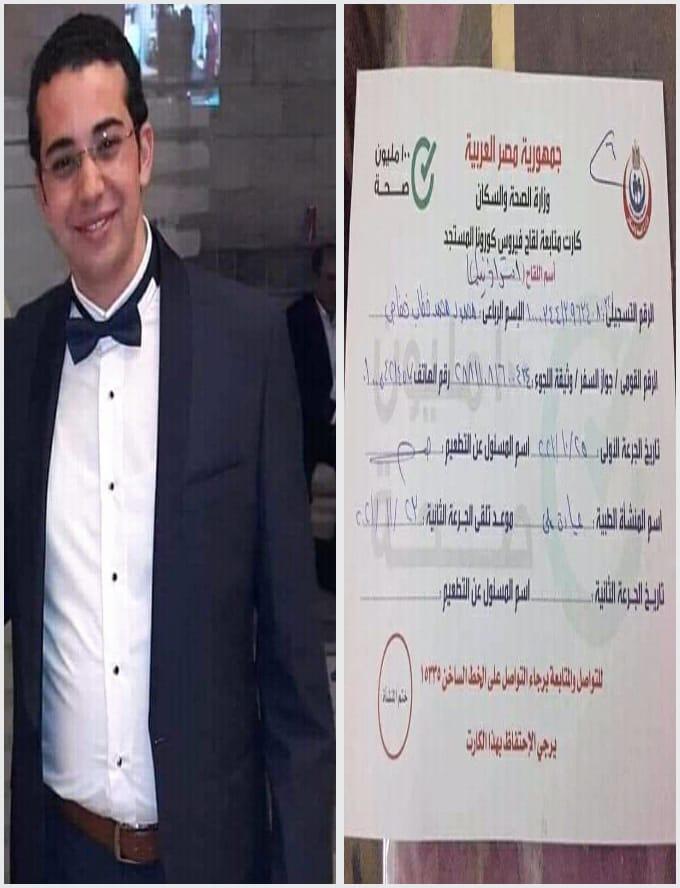 طبيب مصري أسمه “محمود خفاجي” بالمجمع الطبي بالغربية يحصل علي لقاح كورونا من نوع “استرازينيكا “بعد رفضه لحصوله علي اللقاح ولكن عمله طلب منه الحصول علي اللقاح ولكنه دخل في غيبوبة بمستشفي “المنشاوي”وفشلت محاولات إنقاذه وطالب زملائه بالتحقيق في الموضوع وبالفعل وصل نقيب أطباء الغربيةدكتور “بهاء توفيق”لمعرفة الحقيقة خاصة ان الدكتور “محمود خفاجي” لايعاني من اي امراض مزمنة.