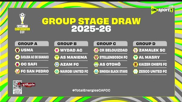 أسفرت مراسم قرعة دور المجموعات للنسخة الثالثة والعشرين من بطولة كأس الكونفدرالية الأفريقية، التي أقيمت ظهر اليوم الإثنين بمدينة جوهانسبرج…