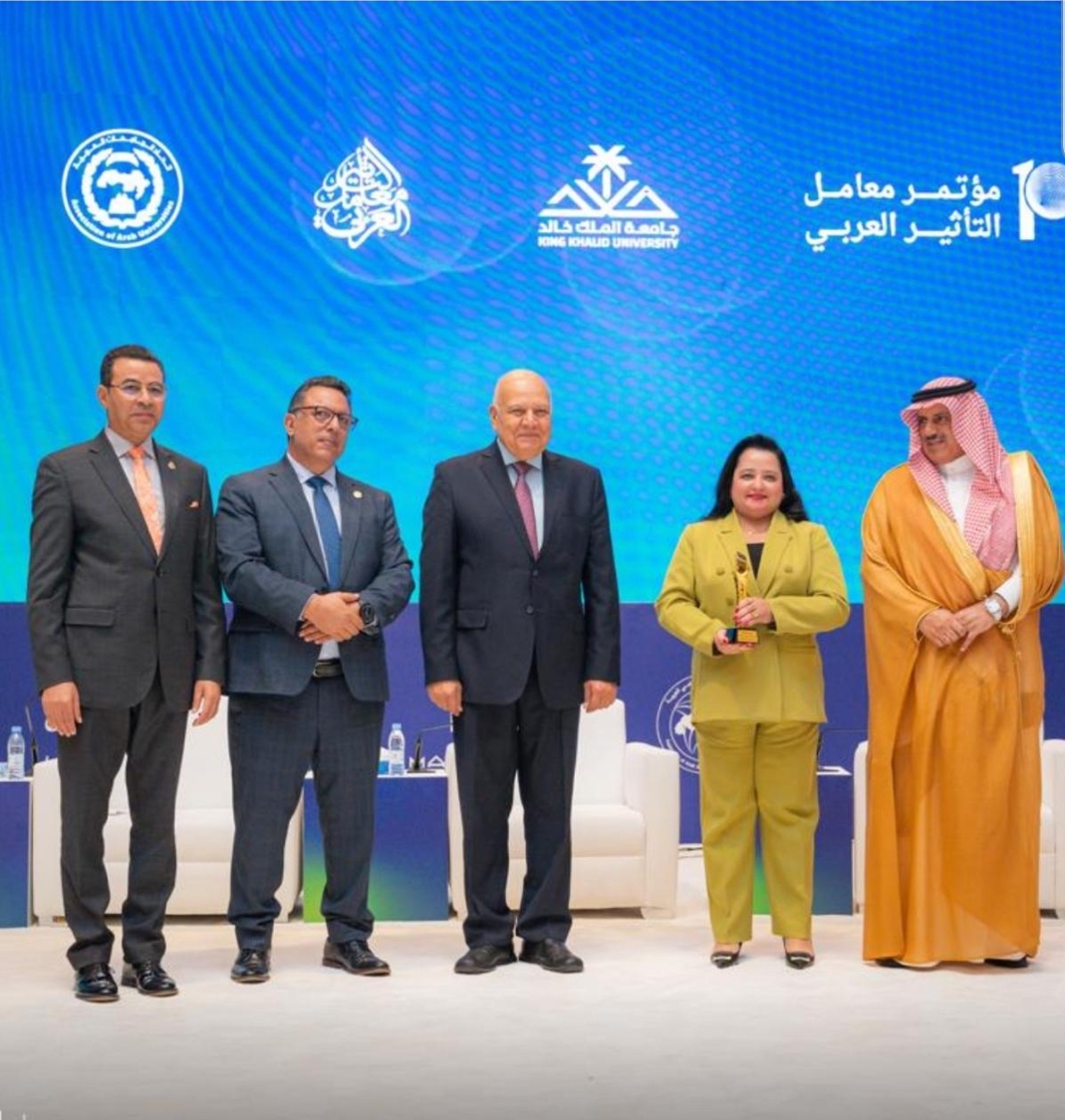 تكريم الدكتورة هبة صلاح حامد بدرع معامل التأثير العربي من رئيس جامعة الملك خالد – المملكة العربية السعودية